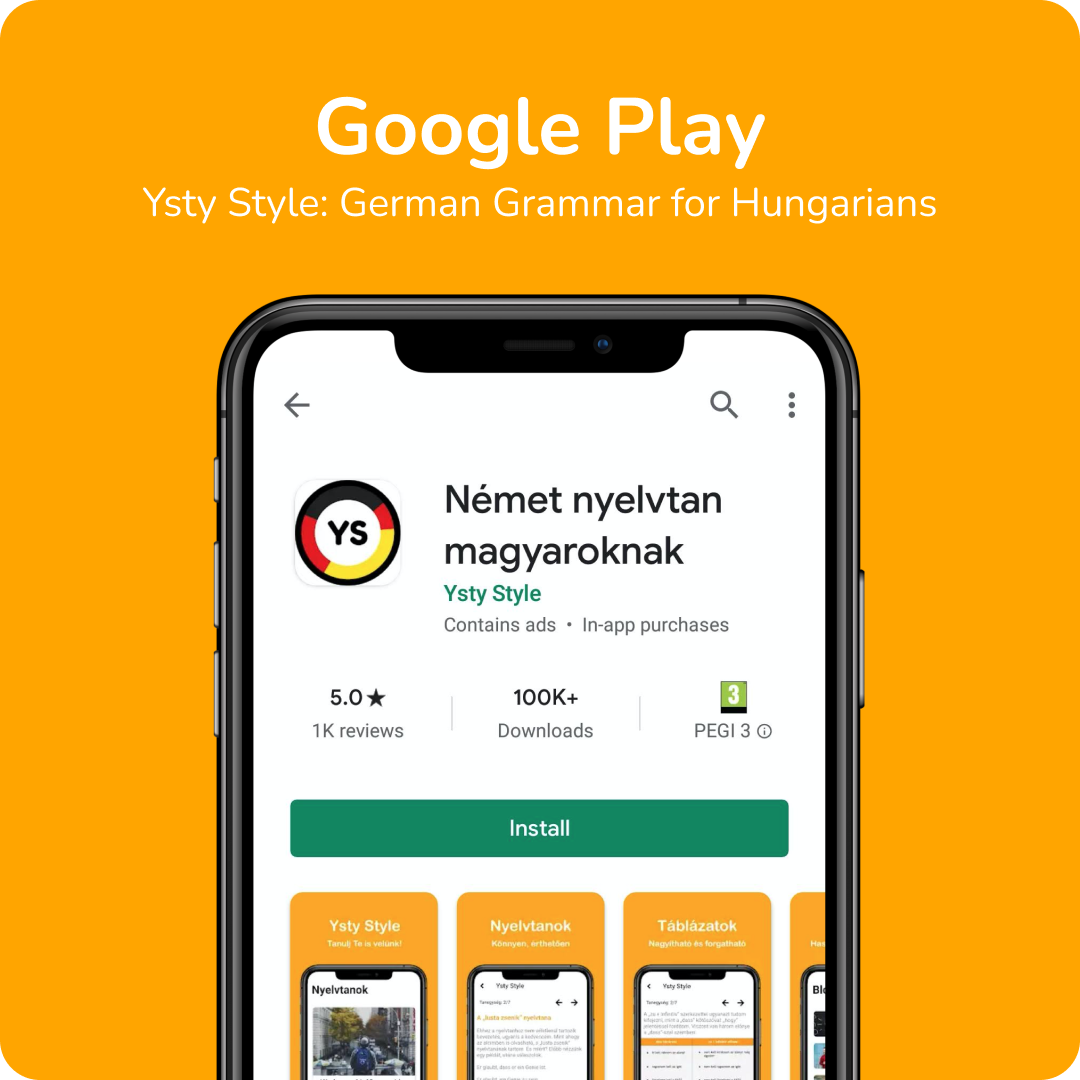 The app is called “Ysty Style: German grammar for Hungarians”. It is an educational German language learning app. The android version has more than a 100 000+ downloads with more than a 1000+ positive review.
